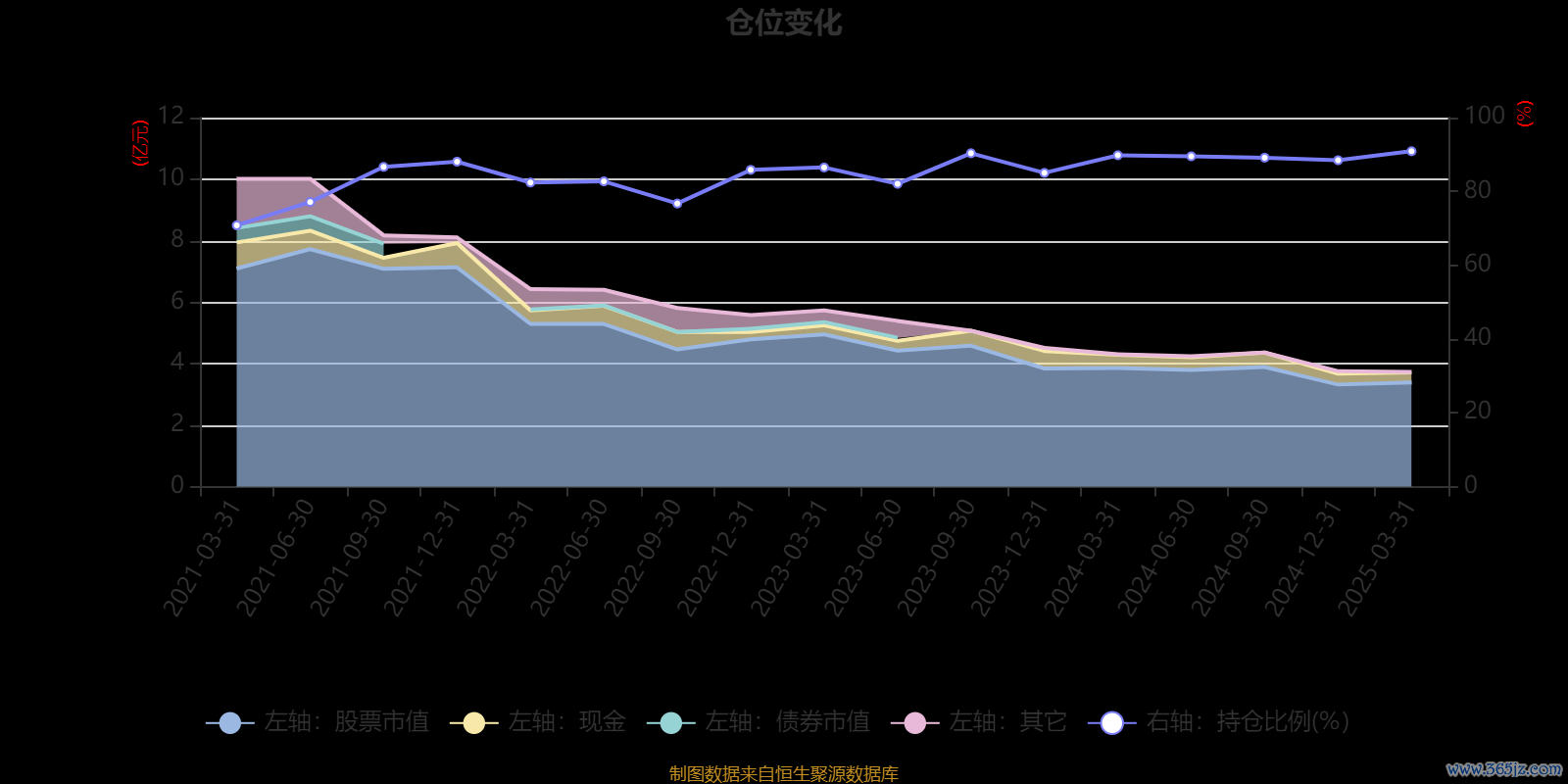 据定期报告数据统计,近三年平均股票仓位为86.41%,同类平均为80.16%。2025年一季度末基金达到90.89%的最高仓位,2021年一季度末最低,为70.8%。