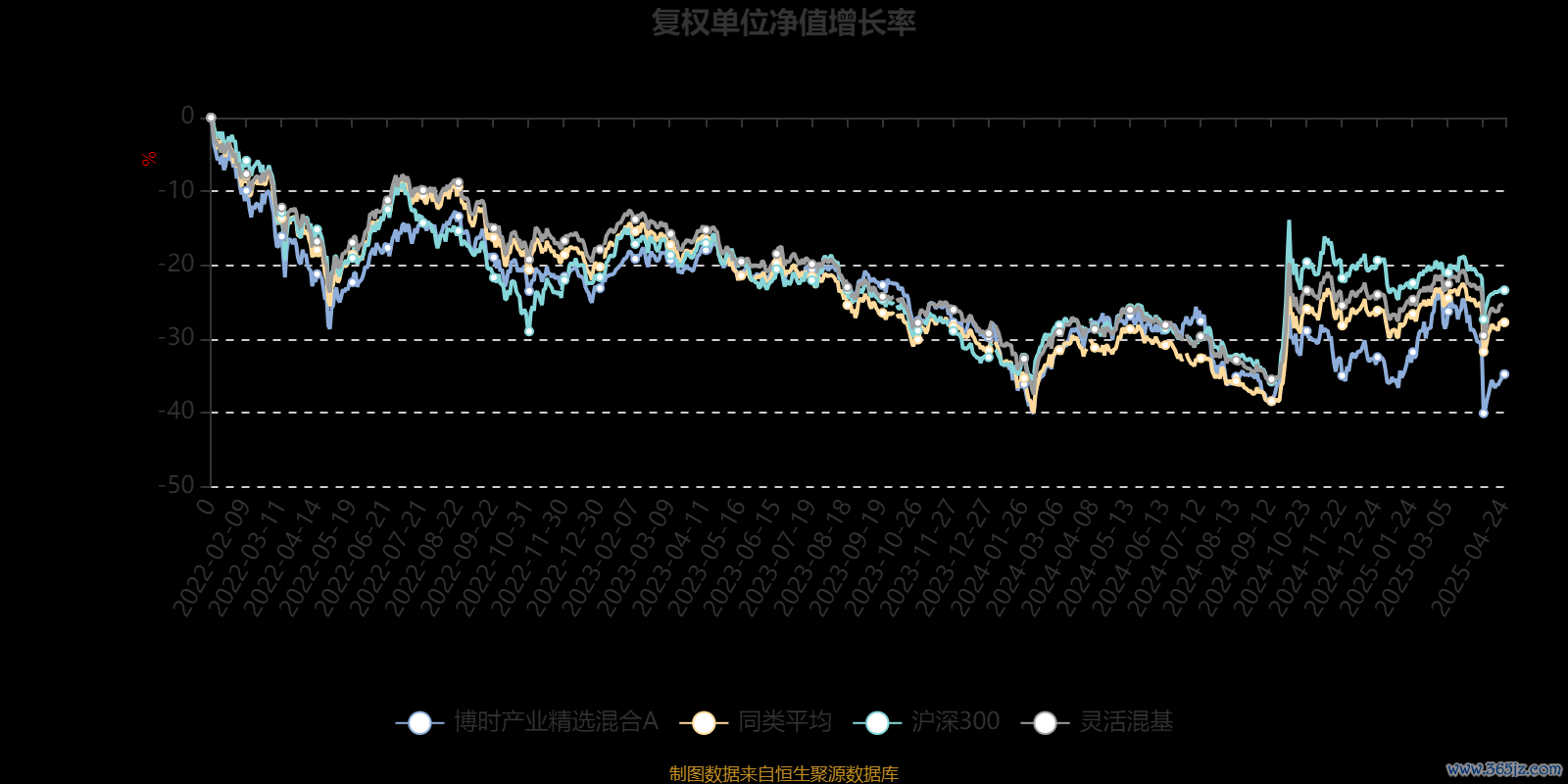 截至4月24日,博时产业精选混合A近三个月复权单位净值增长率为-4.38%,位于同类可比基金702/918;近半年复权单位净值增长率为-7.06%,位于同类可比基金764/918;近一年复权单位净值增长率为-8.83%,位于同类可比基金869/918;近三年复权单位净值增长率为-13.60%,位于同类可比基金587/901。