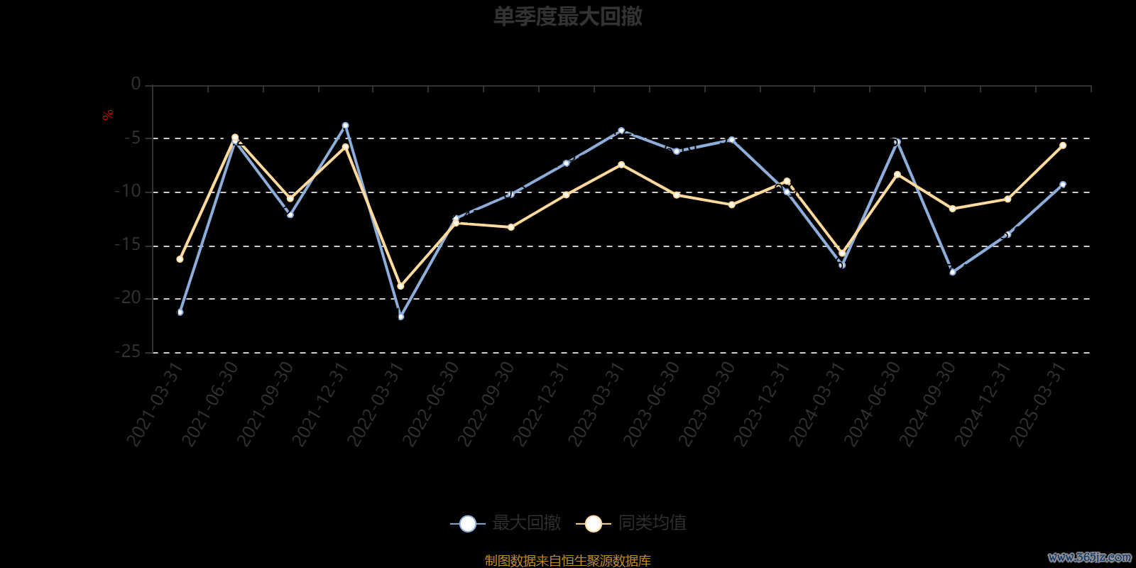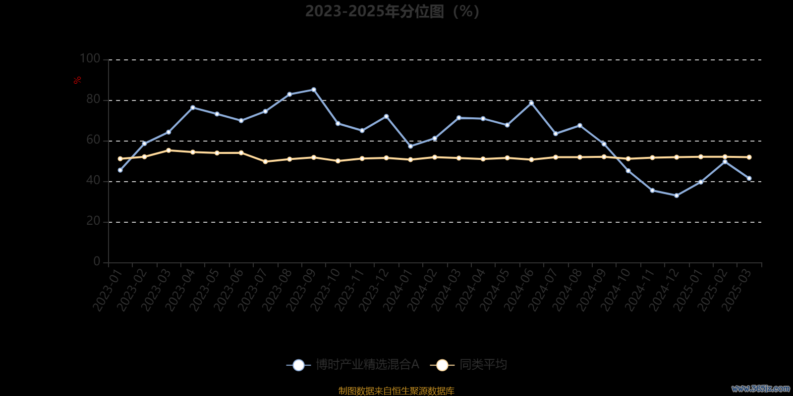 通过所选区间该基金净值增长率分位图,可以观察该基金与同类基金业绩比较情况。图为坐标原点到区间内某时点的净值增长率在同类基金中的分位数。